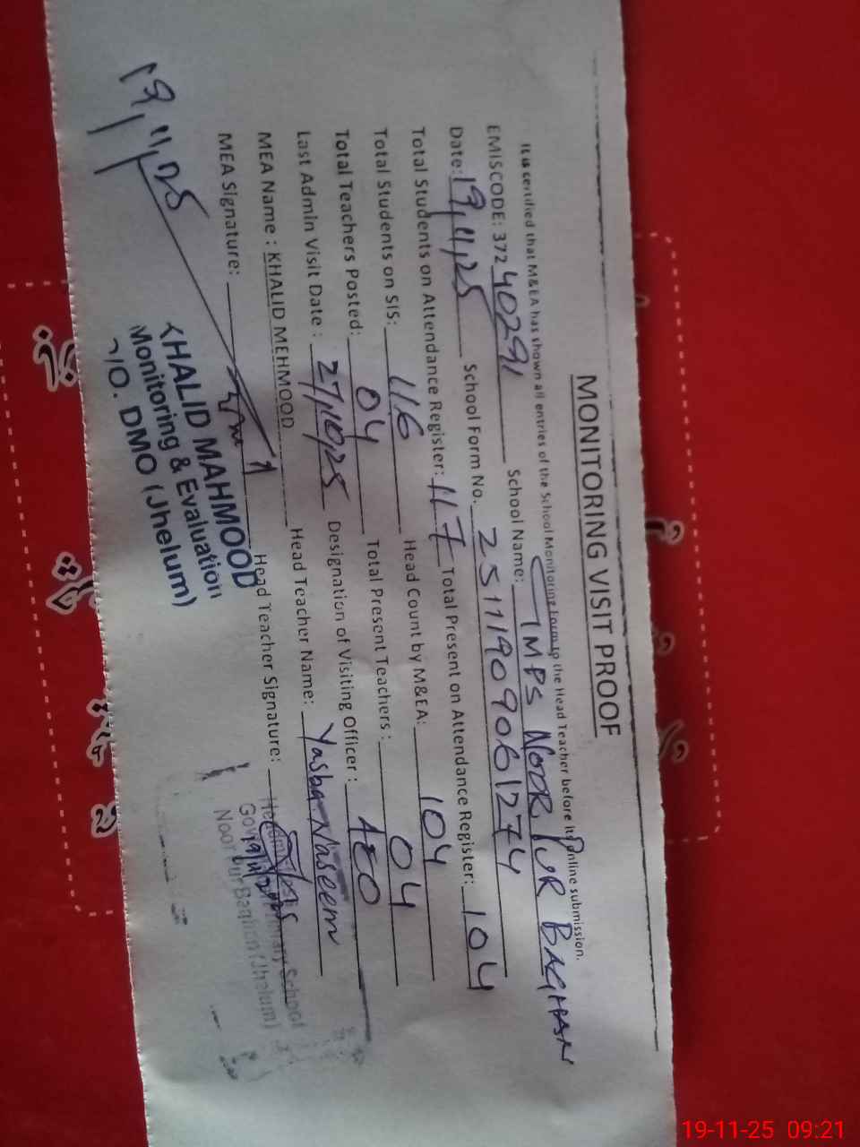 | EMIS Code: 37240291 | Name of School: GMPS NOOR PUR BAGHAN | |||
