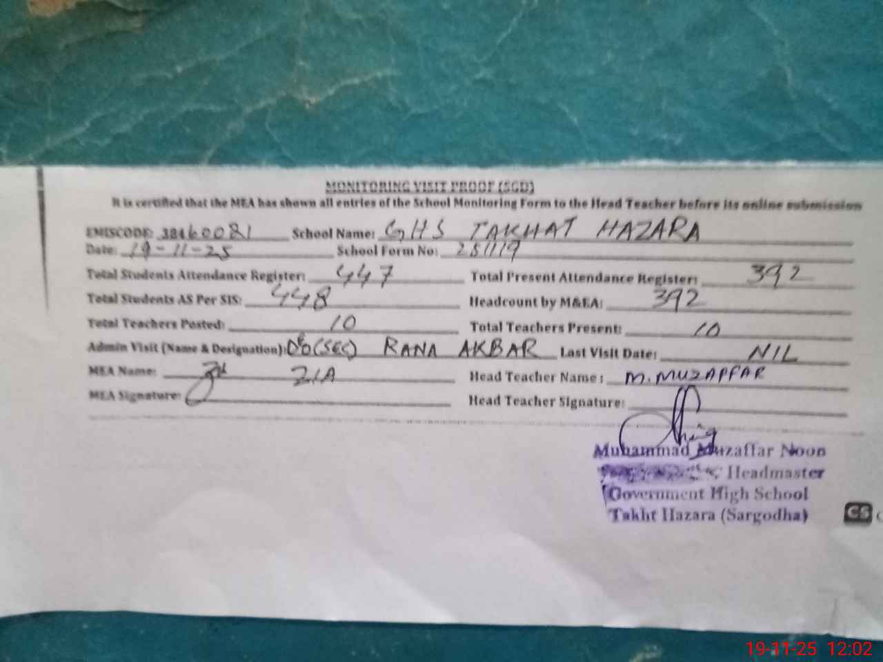 | EMIS Code: 38460021 | Name of School: GHS TAKHAT HAZARA | |||