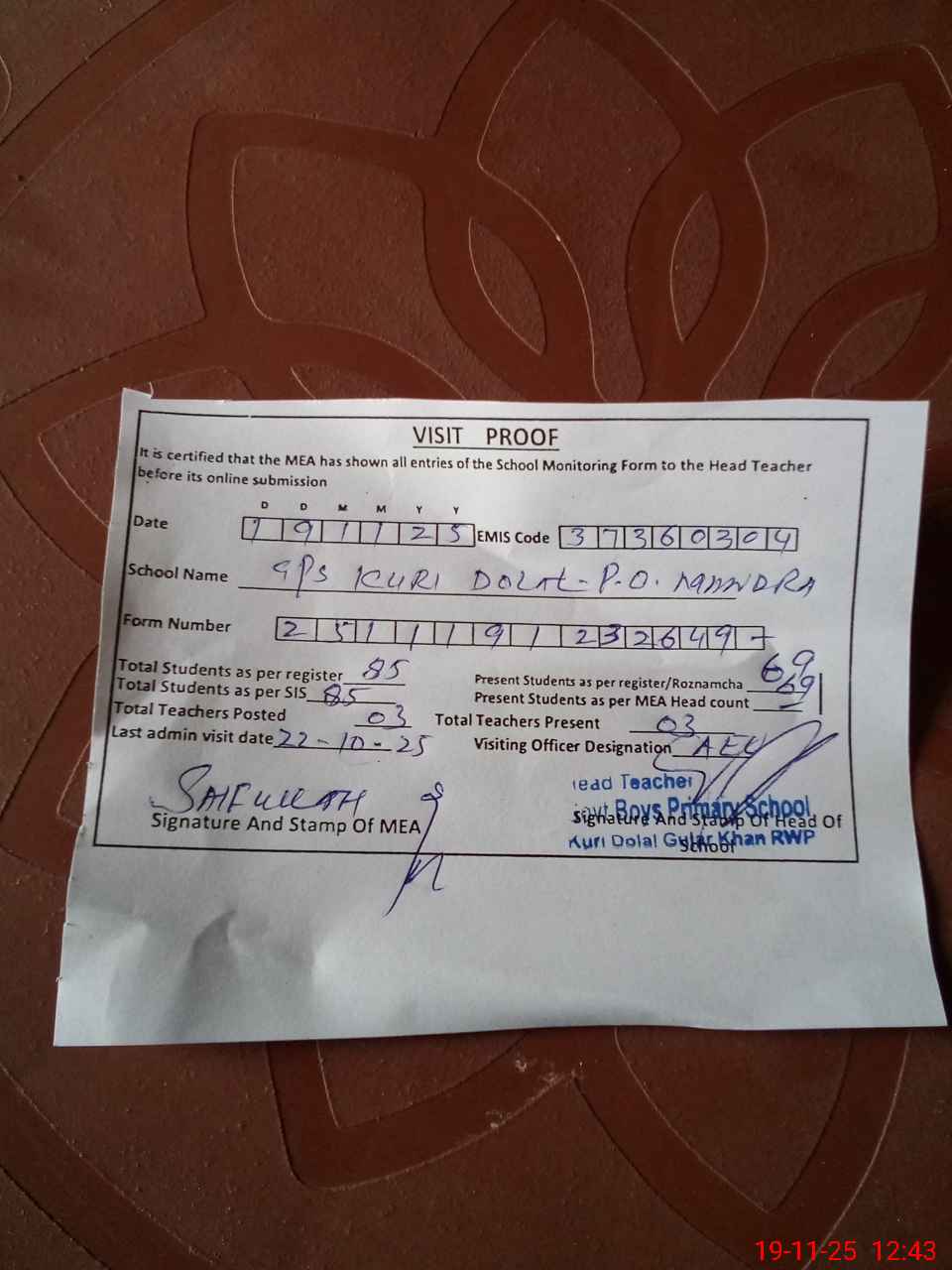 | EMIS Code: 37360304 | Name of School: GPS KURI DOLAL P.O KURI DOLAL | |||