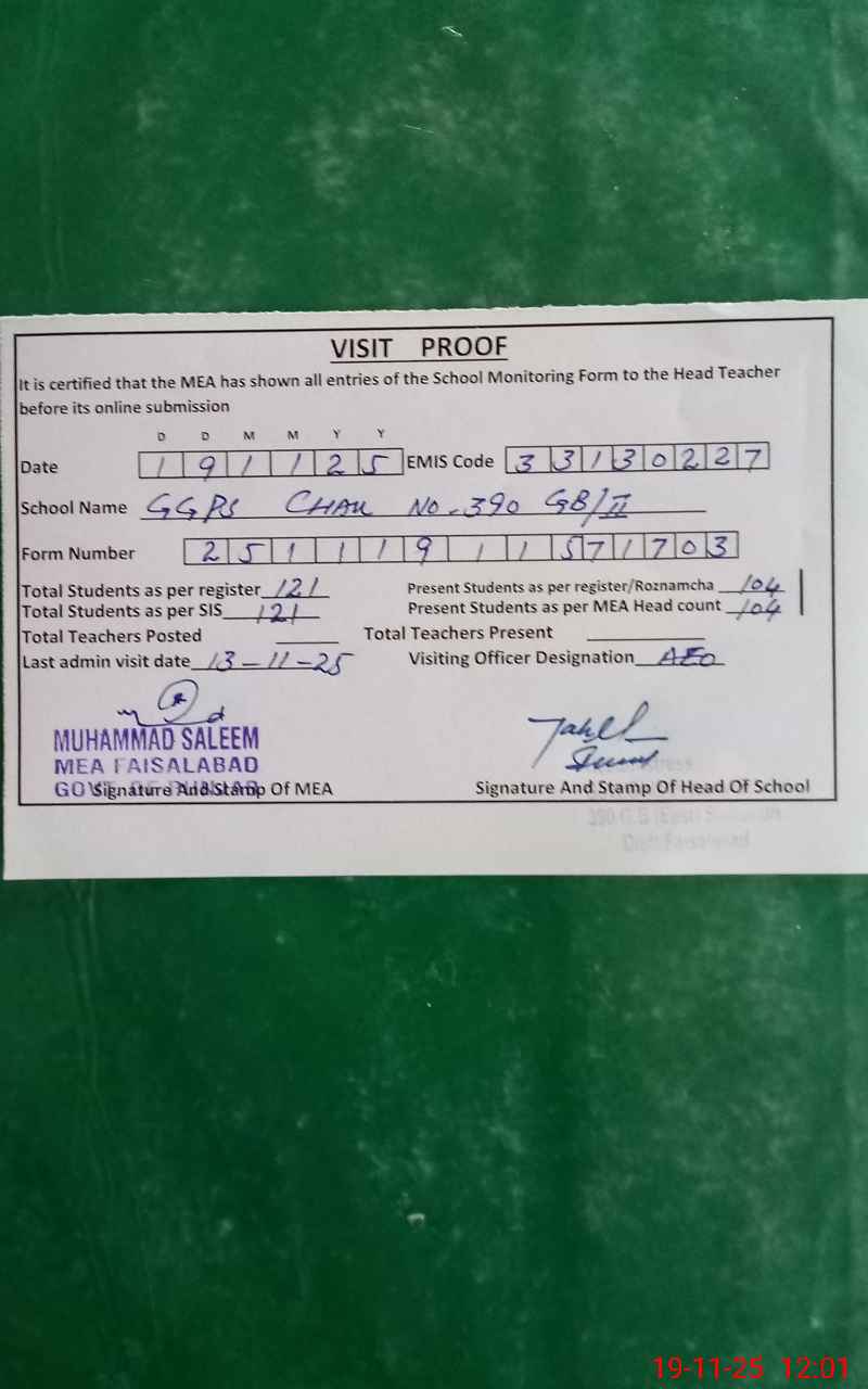 | EMIS Code: 33130227 | Name of School: GGPS CHAK 390 GB II SAMUNDRI | |||