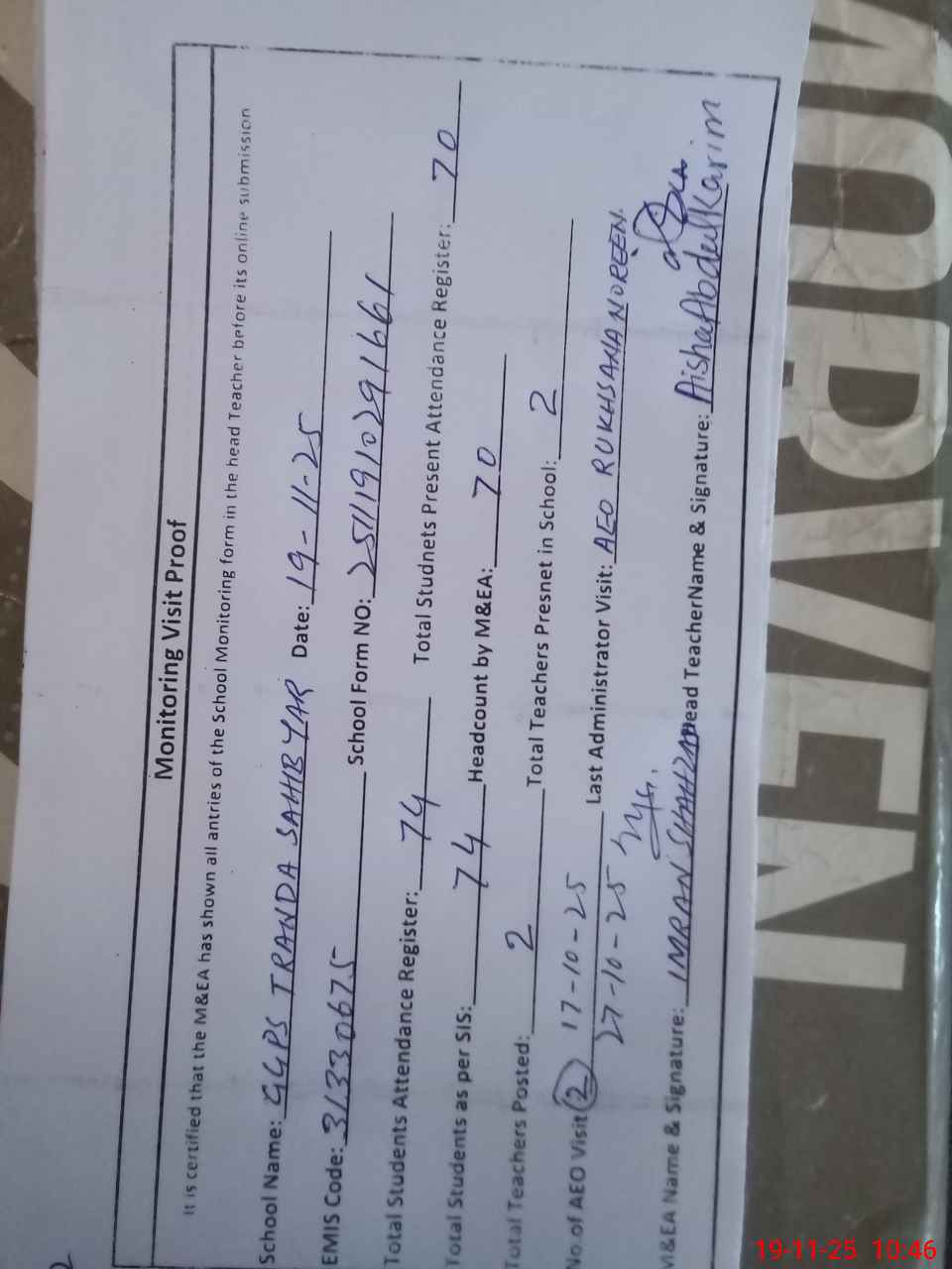 | EMIS Code: 31330675 | Name of School: GGPS TRANDA SAHIB YAR KHAN | |||