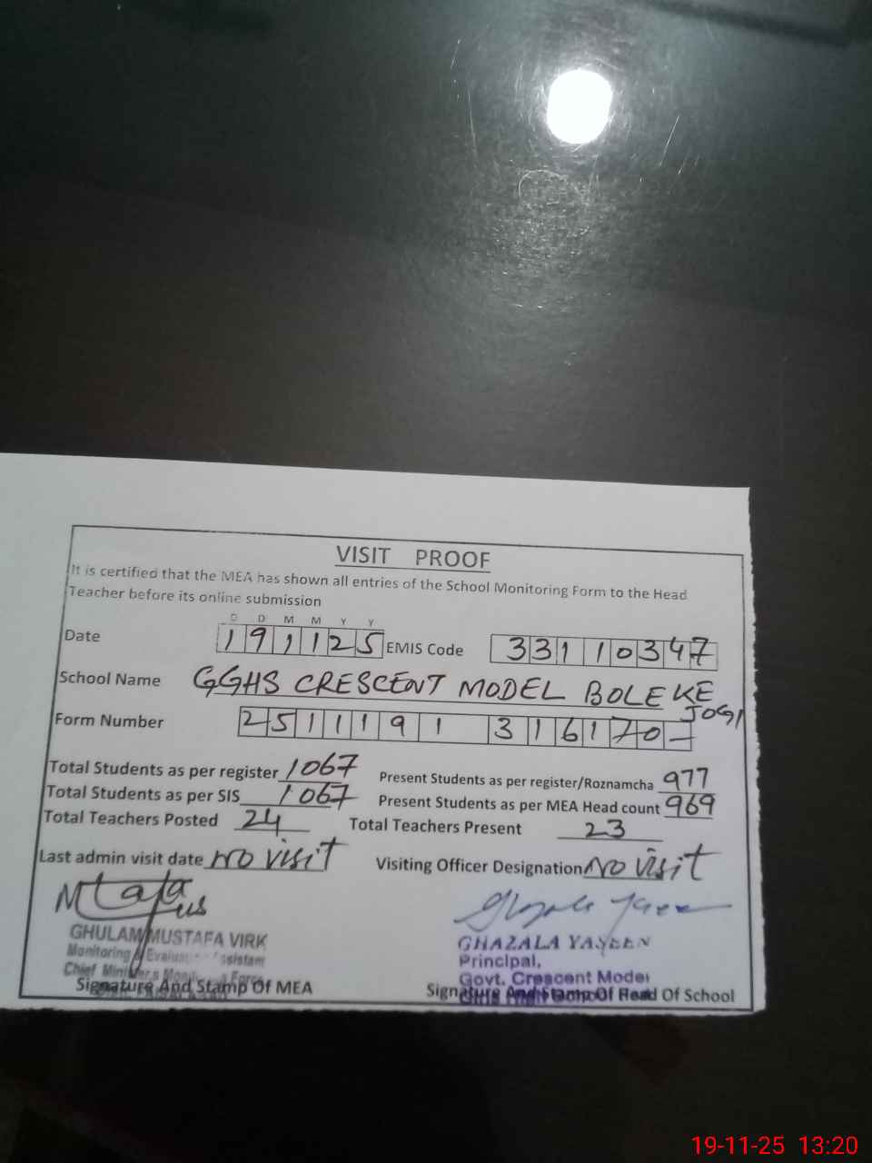 | Name: GH**** YA**** Designation: (School Headmaster's/Headmistress's) S H M Phone/Cell Number: 03**** |