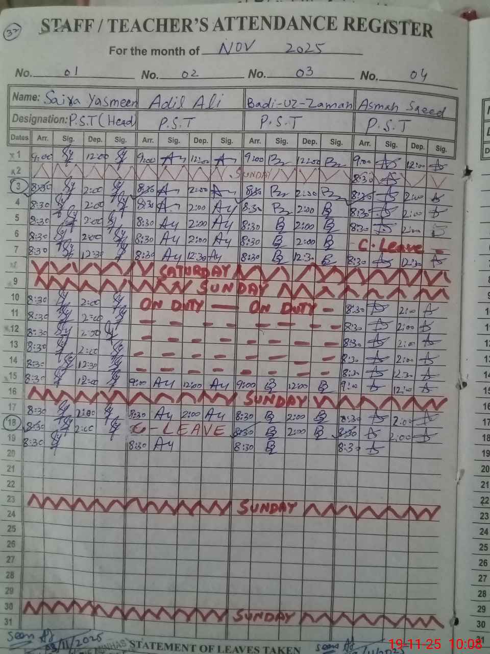 | Leave | Duty | Absent | Maternity | Medical | Ex- Pak |