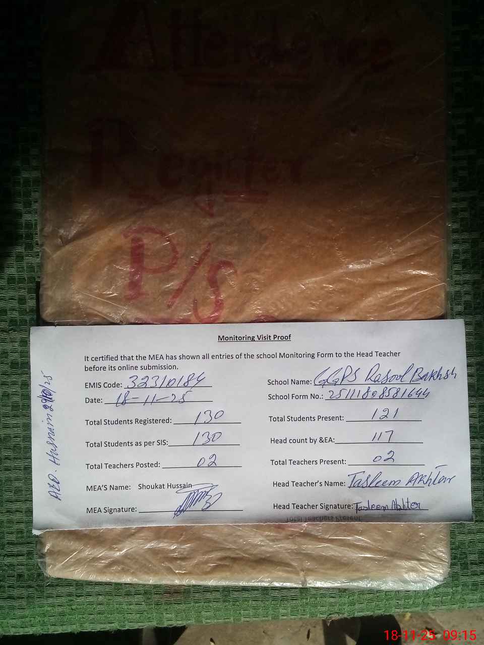 | EMIS Code: 32310184 | Name of School: GGPS BASTI RASOOL BAKHSH | |||