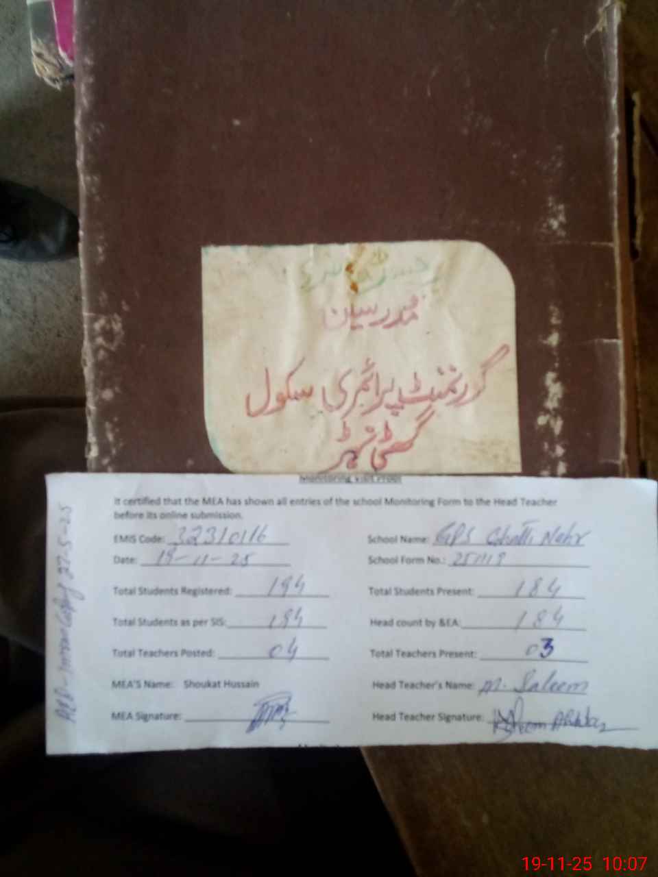 | EMIS Code: 32310116 | Name of School: GPS GHATTI NAHAR | |||