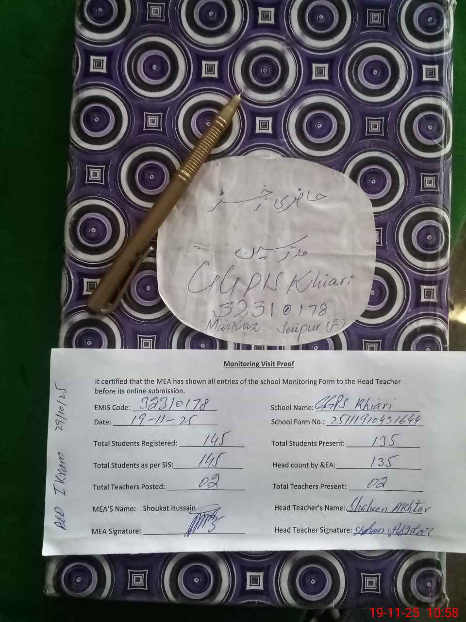 | EMIS Code: 32310178 | Name of School: GGPS BASTI KHIARI | |||