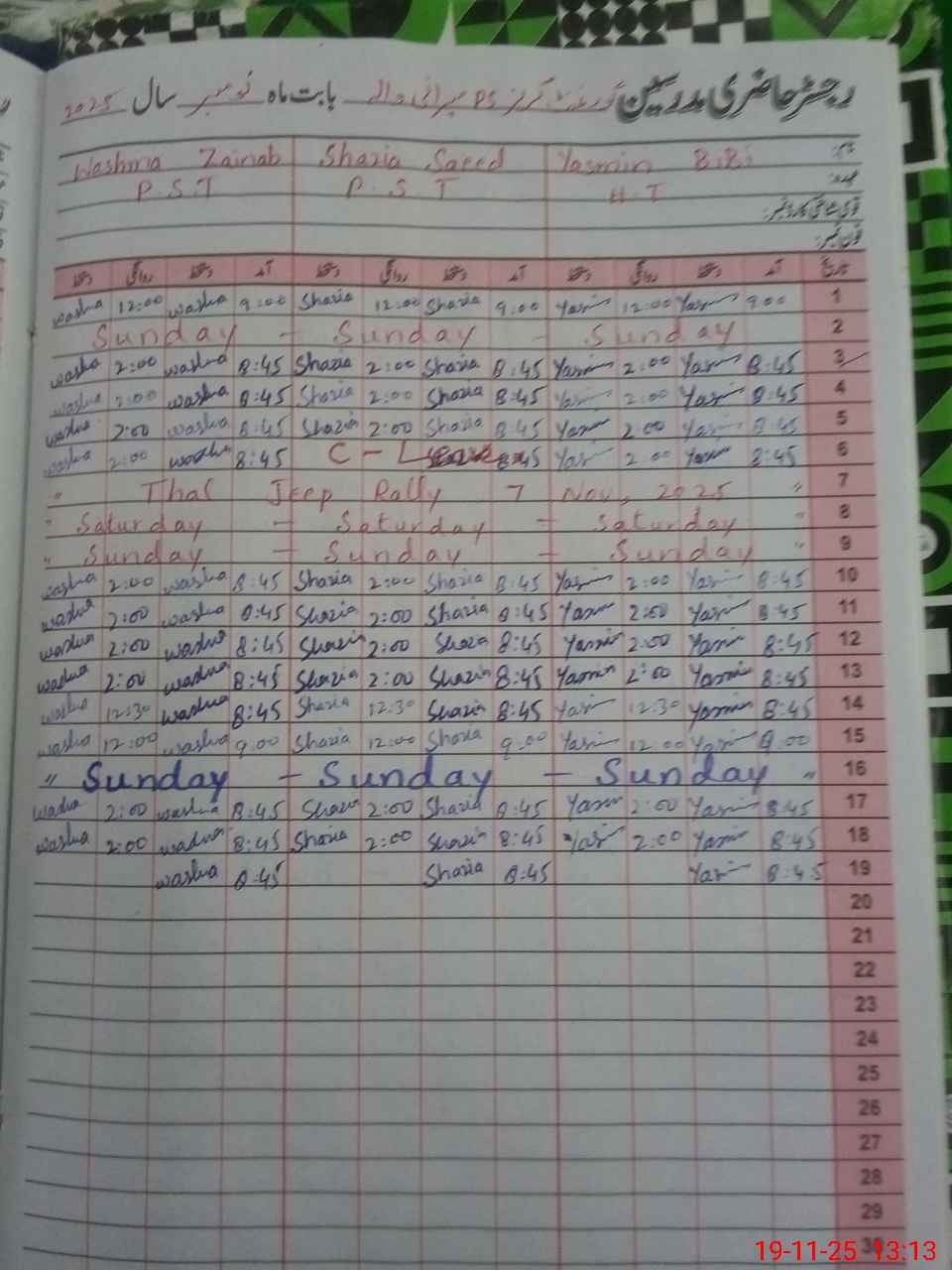 | CNIC | Full Name | Designation | R/C | Absence During Last Calender Month |