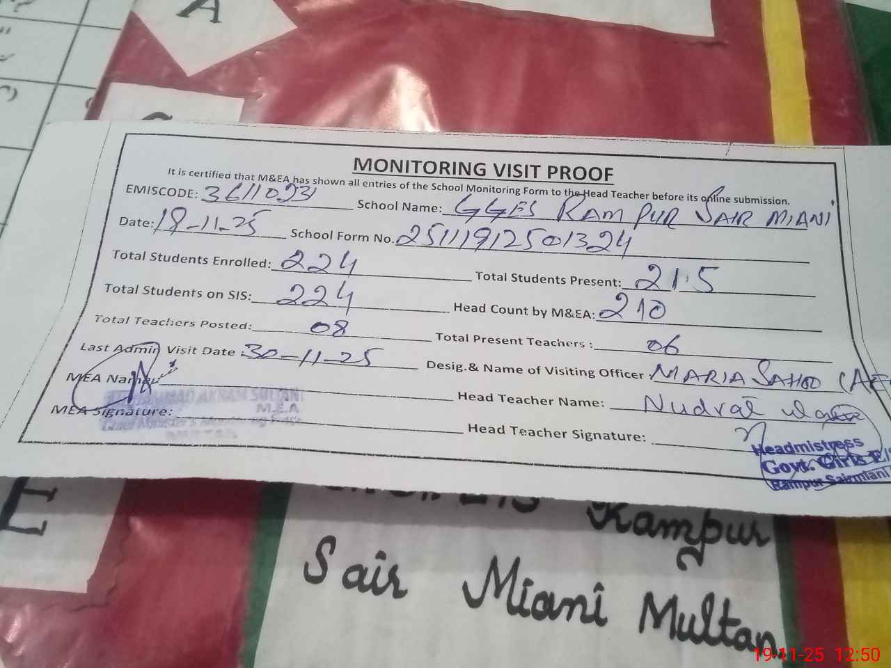 | EMIS Code: 36110231 | Name of School: GGES RAM PUR SAIR MIANI MULTAN | |||