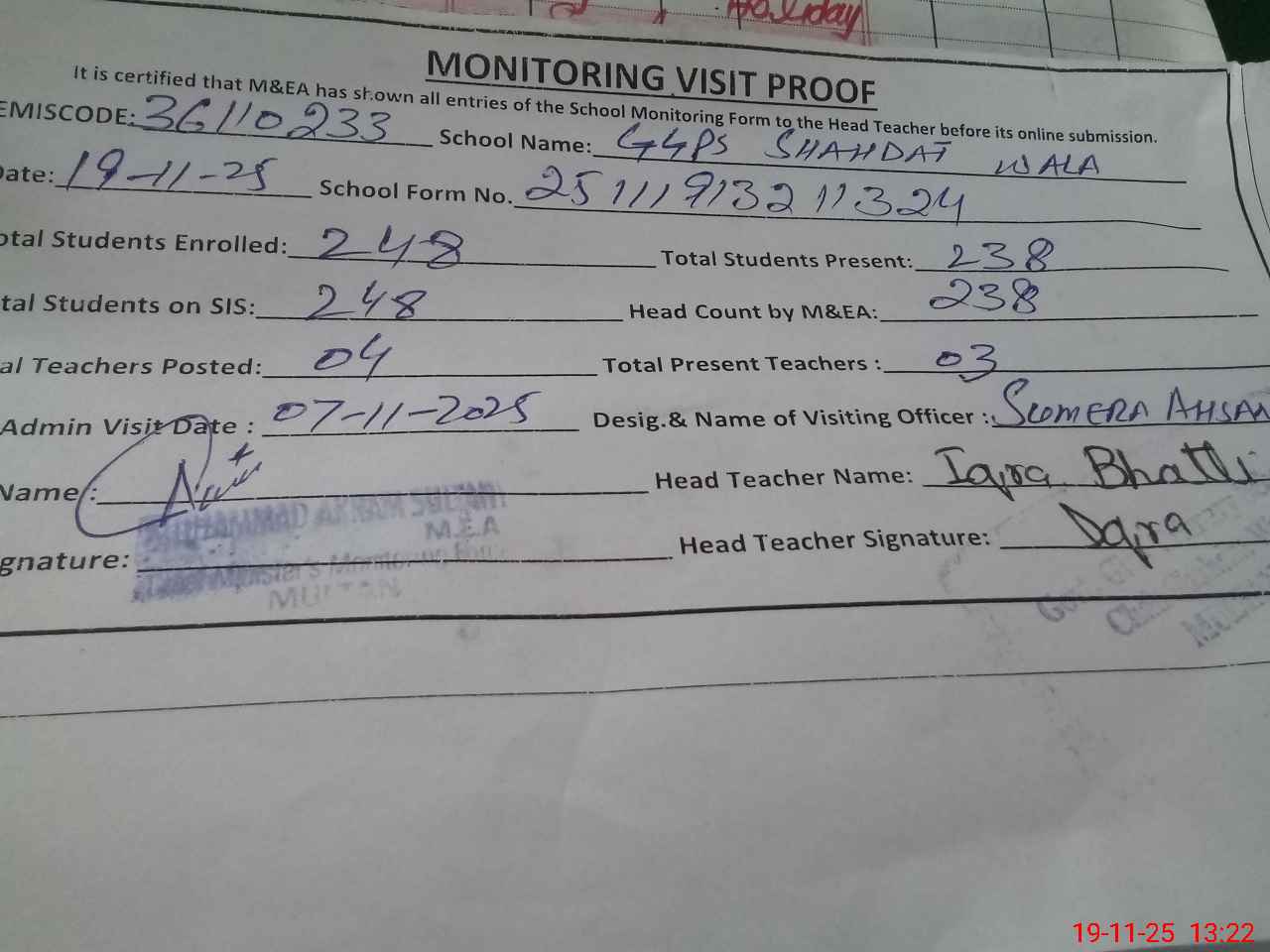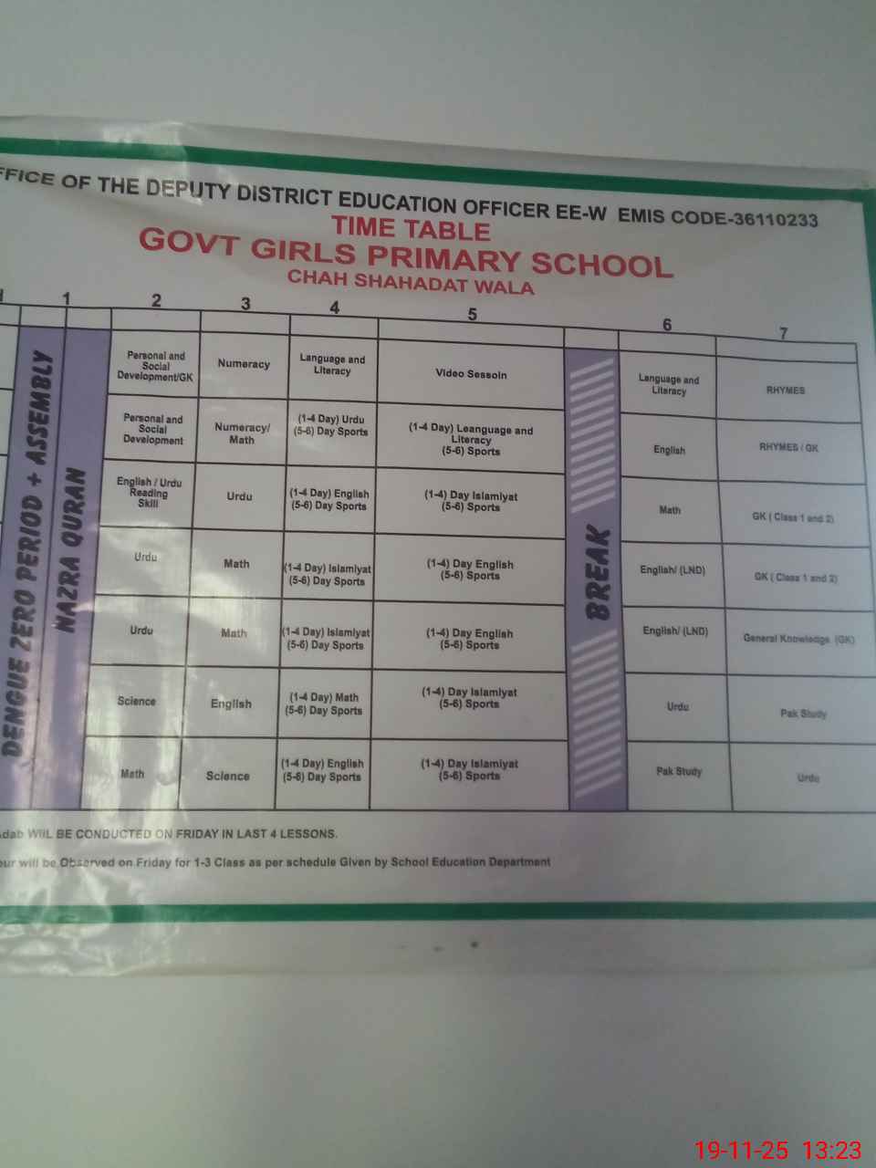 | EMIS Code: 36110233 | Name of School: GGPS CHAH SHAHADAT WALA MULTAN | |||