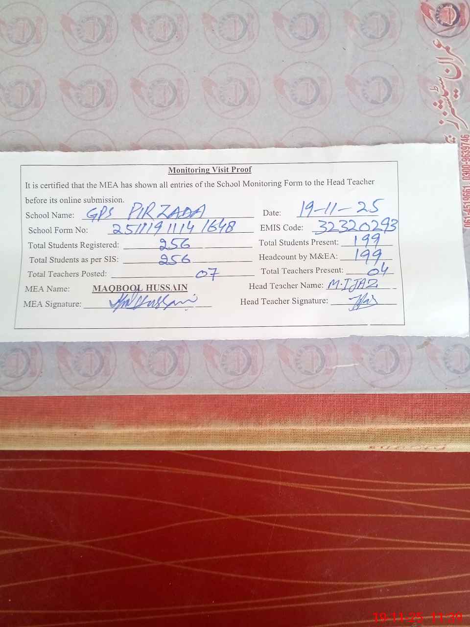 | EMIS Code: 32320293 | Name of School: GPS PIR ZADA | |||