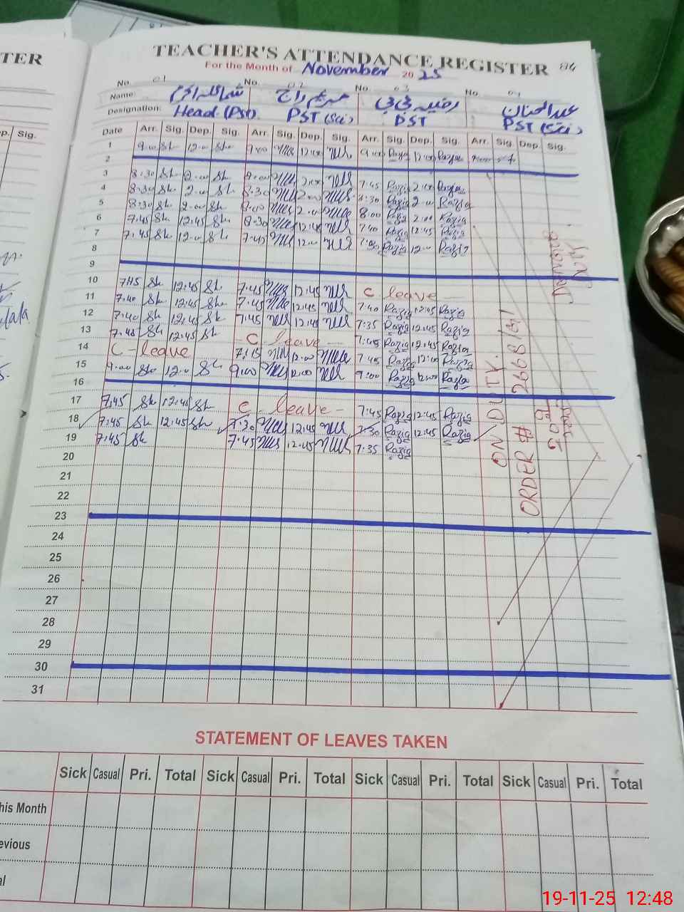 | 37**** | Mu**** Fa**** | N QASID | Regular | 0 | 0 | 31 | 0 | 0 | 0 | 0 | 0 | 0 | Absent (Un-Authorized) |