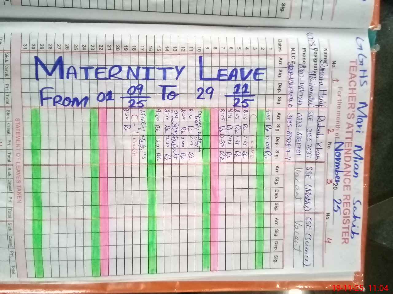 | 31**** | Su**** Ha**** | ESE Science | Regular | 0 | 0 | 0 | 0 | 0 | 0 | 0 | 0 | 0 | Maternity |