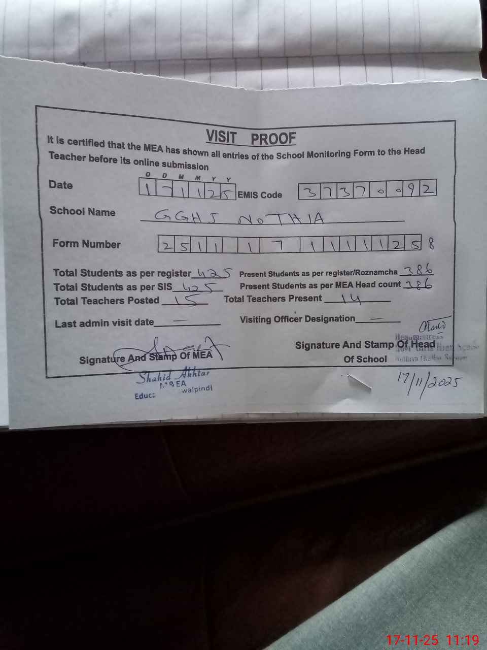 | EMIS Code: 37370092 | Name of School: GGHS NOTHIA | |||