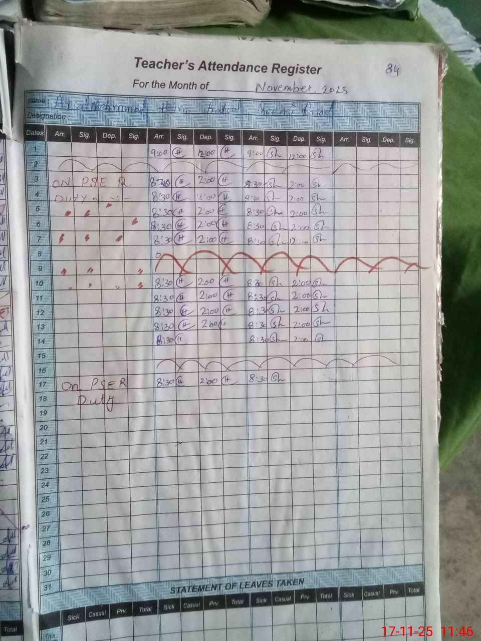 | Name: Hi**** Ba**** Designation: (School Headmaster's/Headmistress's) PST Phone/Cell Number: 03**** |