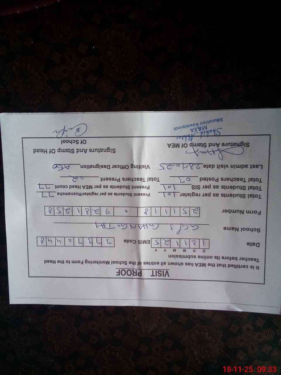 | Certified that this School was Inspected by the Undersigned MEA/DMO Today and the Information Stated Above is as Per Record. | |||||