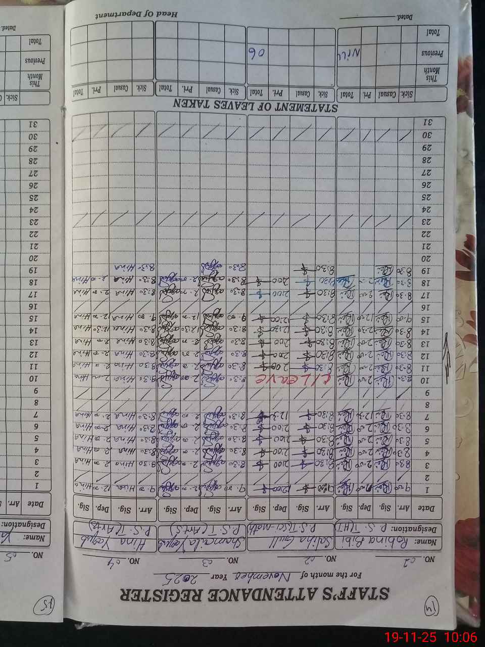 | CNIC | Full Name | Designation | R/C | Absence During Last Calender Month |