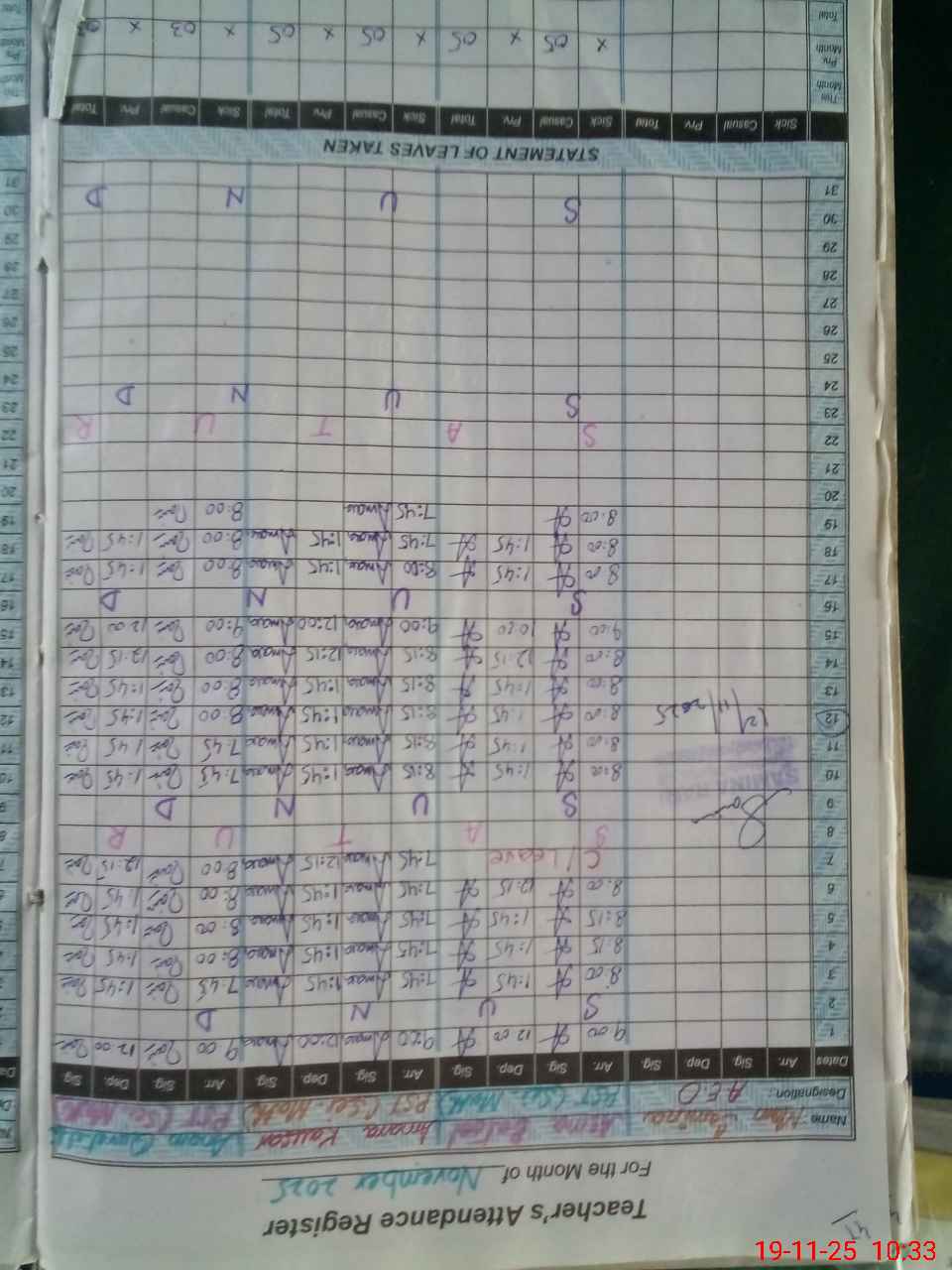 Leave Type | Remarks for Today (Leave,Training, Exam,Absent,Late, Other Duty) |