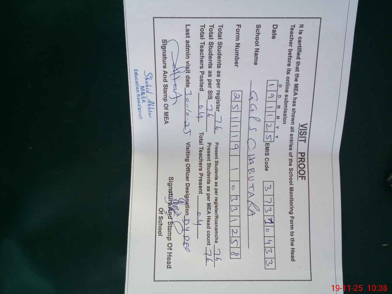 | Certified that this School was Inspected by the Undersigned MEA/DMO Today and the Information Stated Above is as Per Record. | |||||
