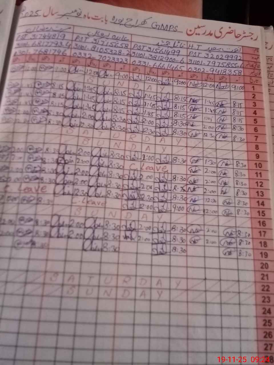 | CNIC | Full Name | Designation | R/C | Absence During Last Calender Month |