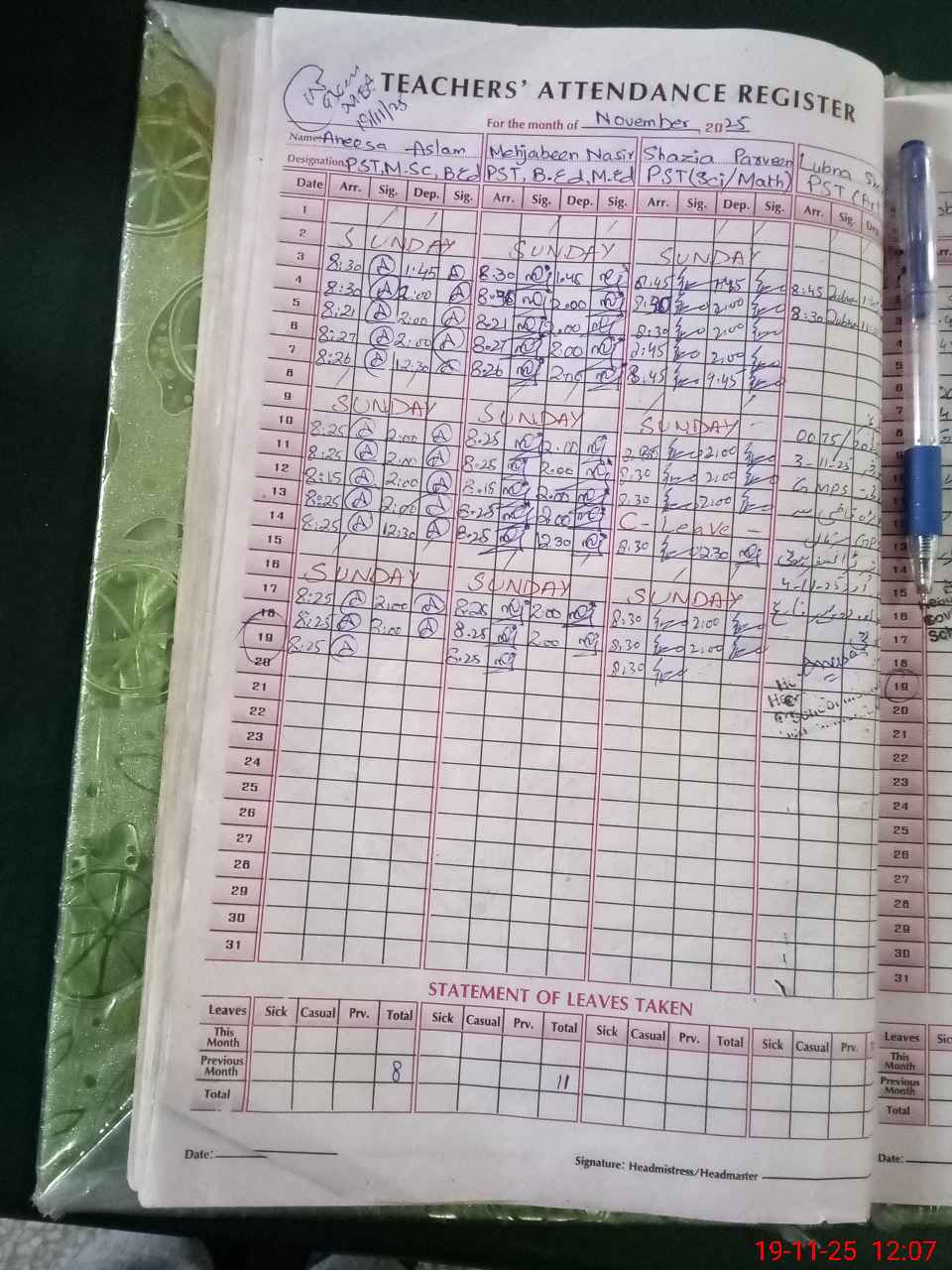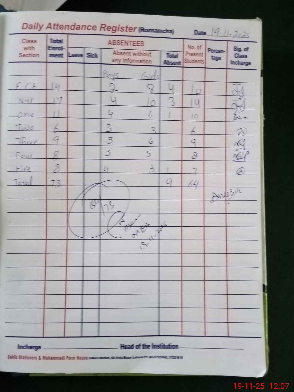 | Attendance Register | Head Teacher | MEA with School | Visit Proof |