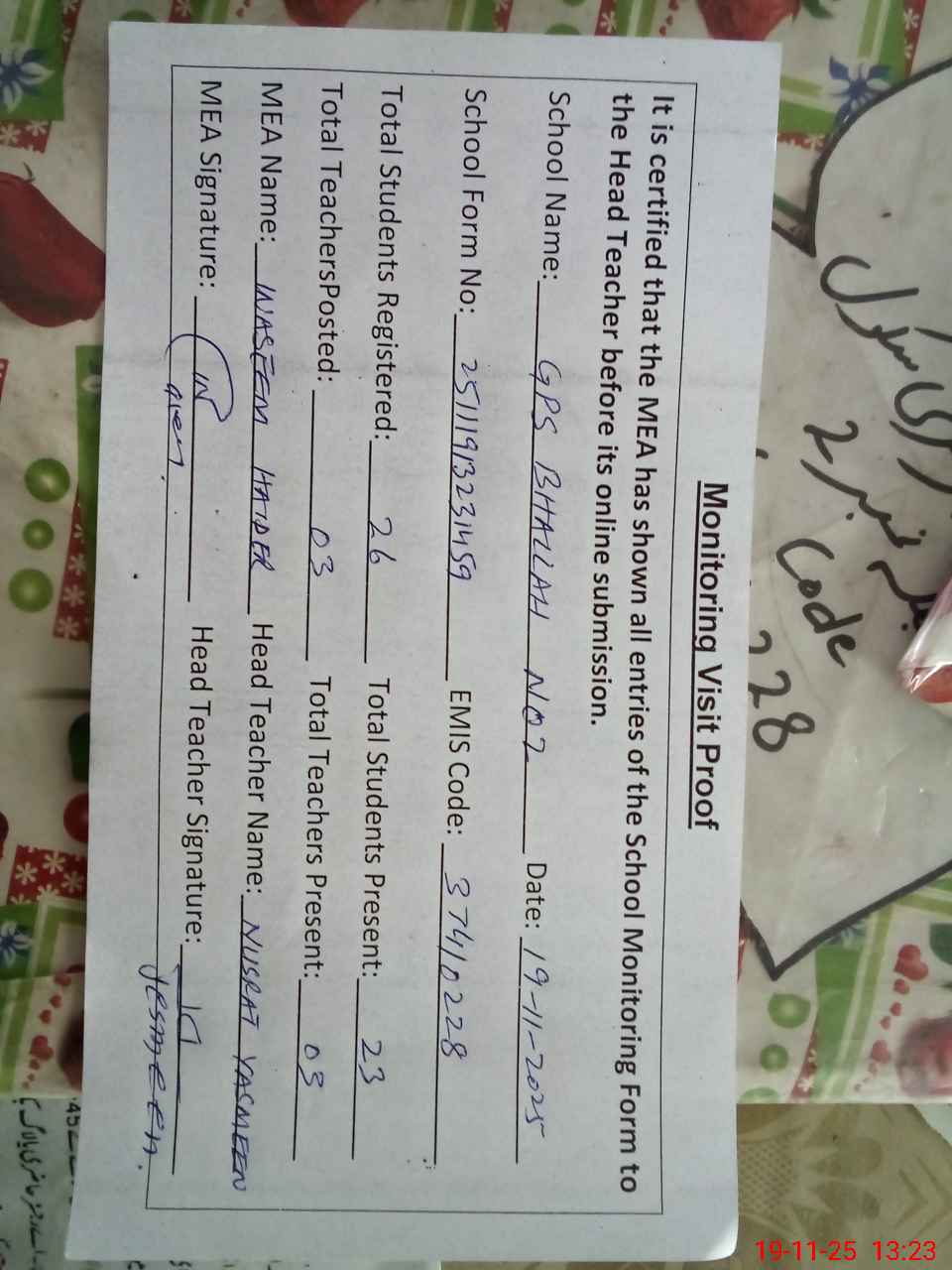 | EMIS Code: 37410228 | Name of School: GPS BHALLAH NO. 2 | |||