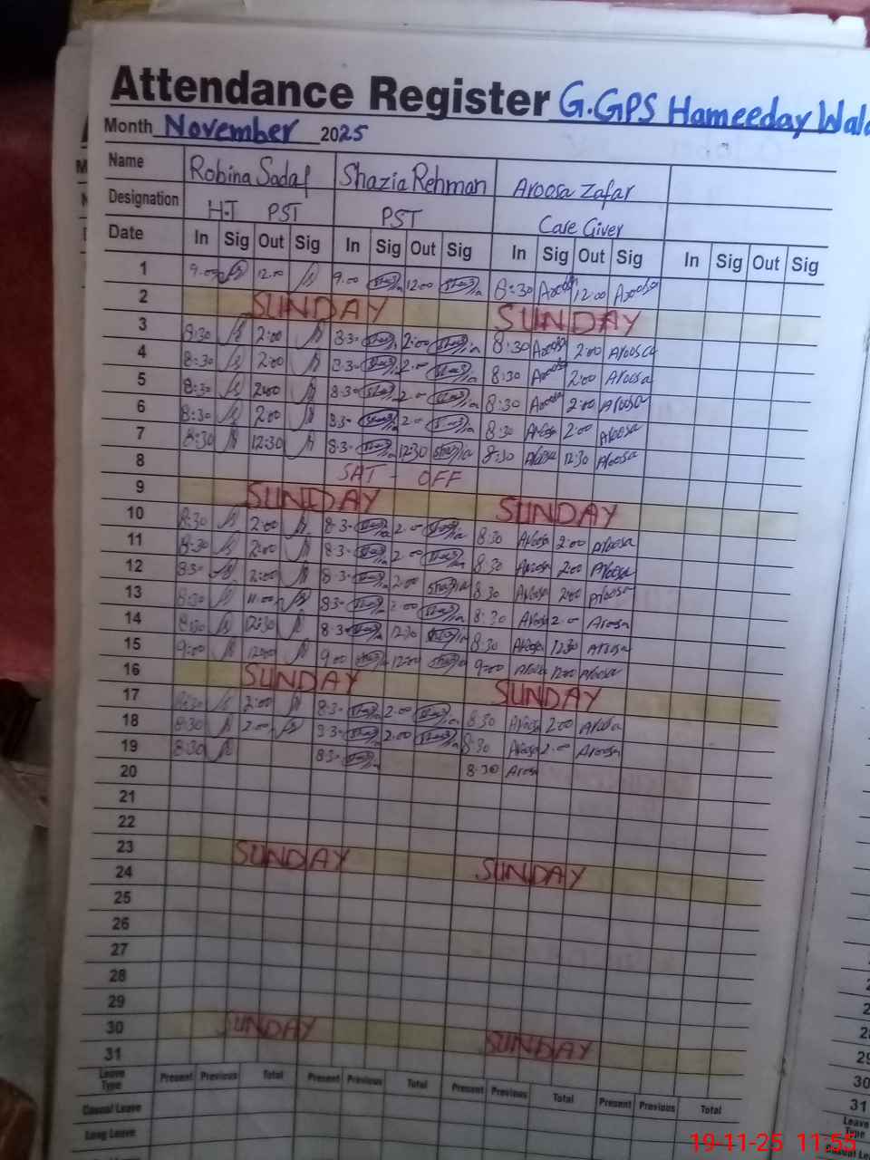 | CNIC | Full Name | Designation | R/C | Absence During Last Calender Month |