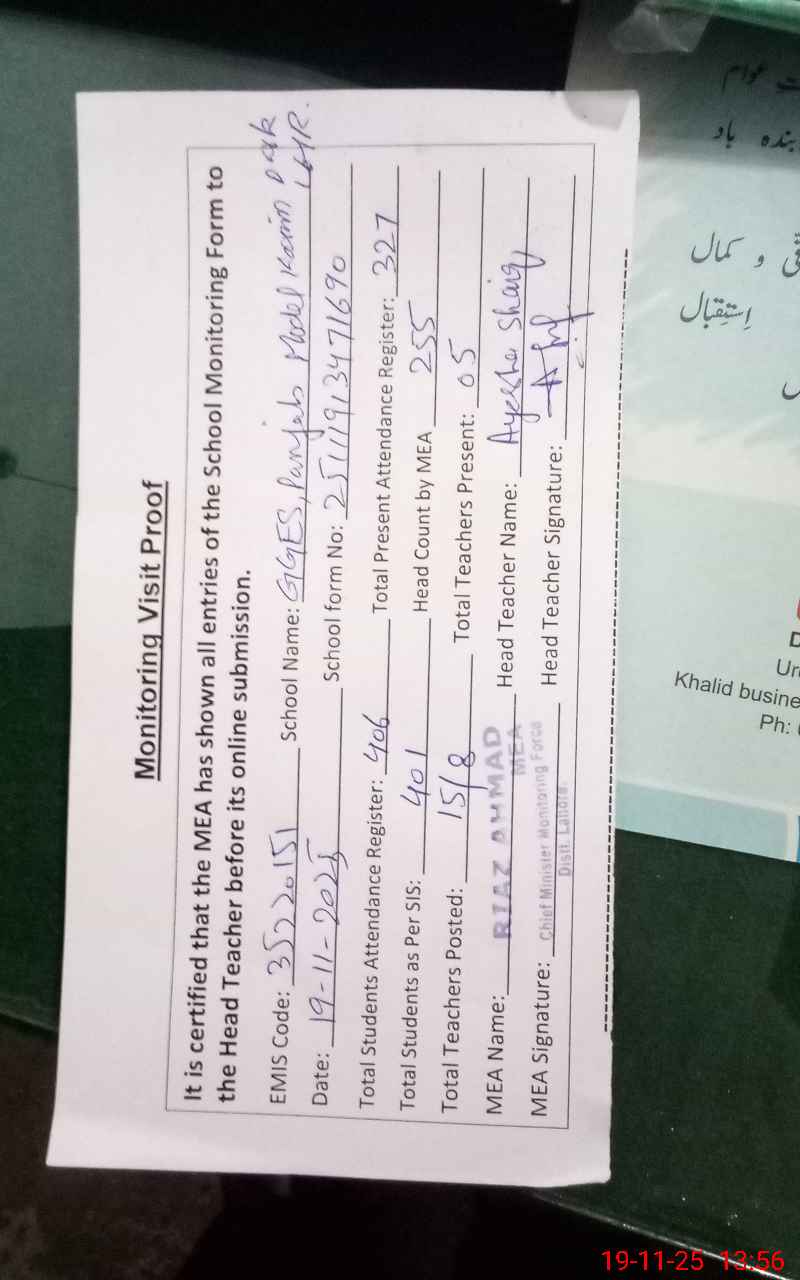 | EMIS Code: 35220151 | Name of School: GGES PUNJAB MODEL KARIM PARK, LAHORE | |||
