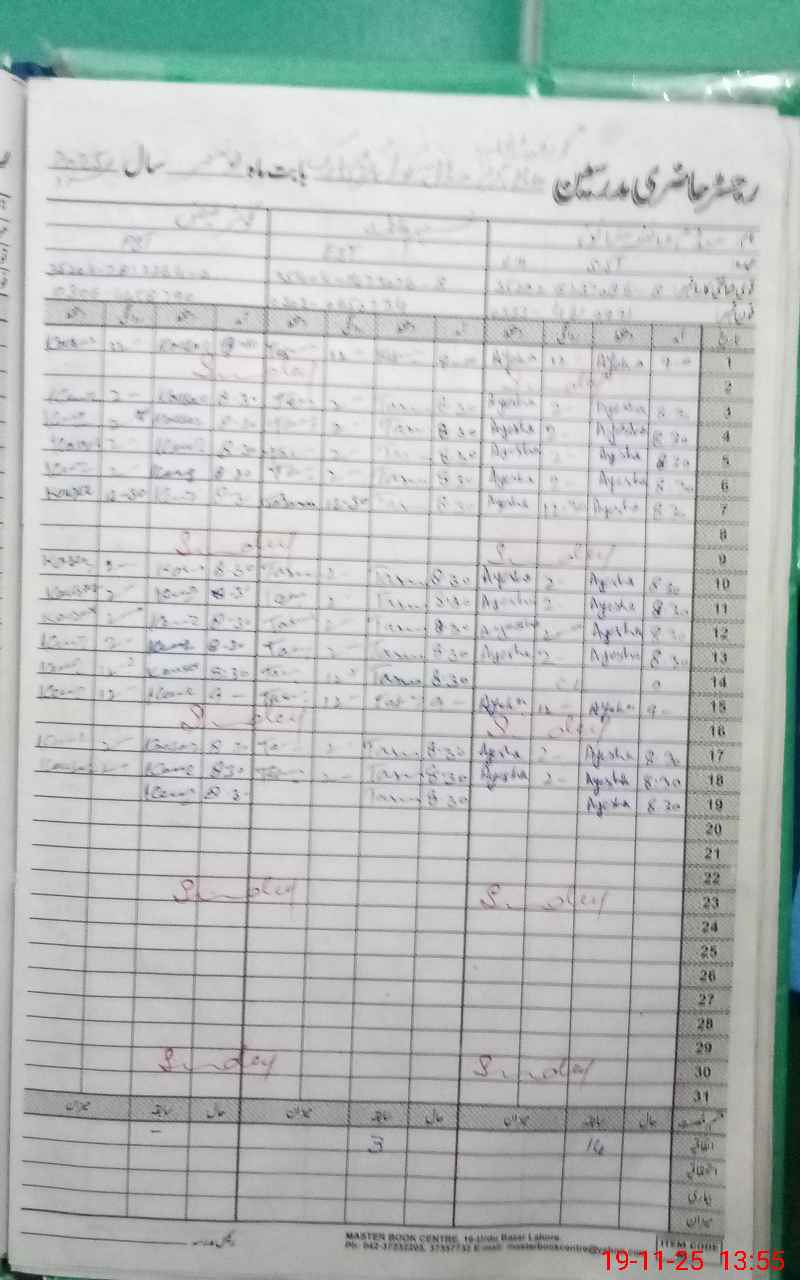 | CNIC | Full Name | Designation | R/C | Absence During Last Calender Month |