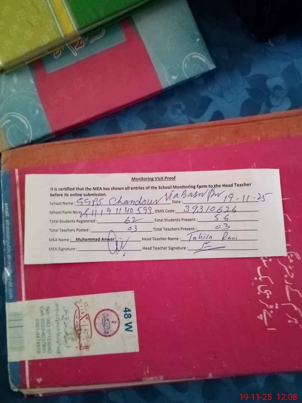 | EMIS Code: 39310626 | Name of School: GGPS CHANDOOR VIA BASEER PUR | |||