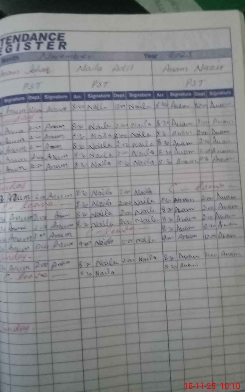| CNIC | Full Name | Designation | R/C | Absence During Last Calender Month |
