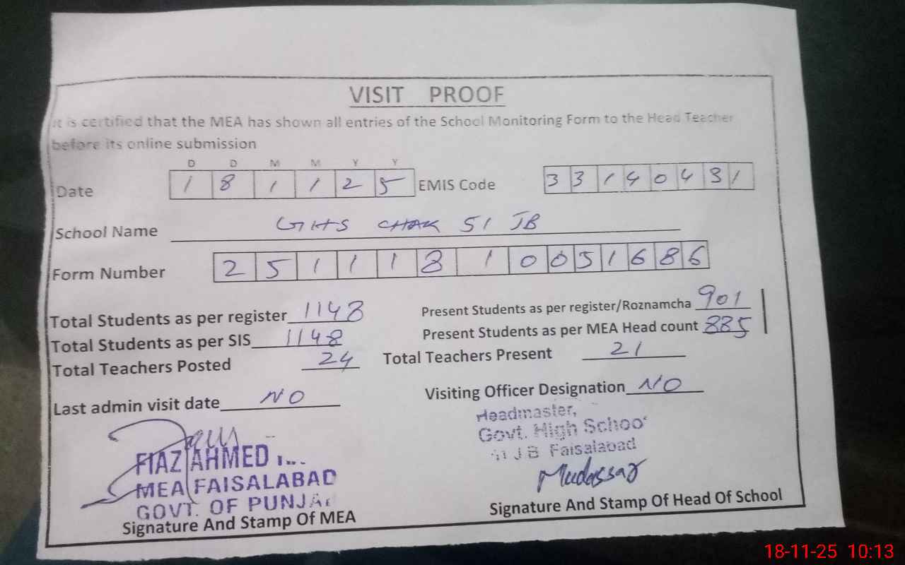 | EMIS Code: 33140431 | Name of School: GHS CHAK 51 JB SAJJAD FSD | |||