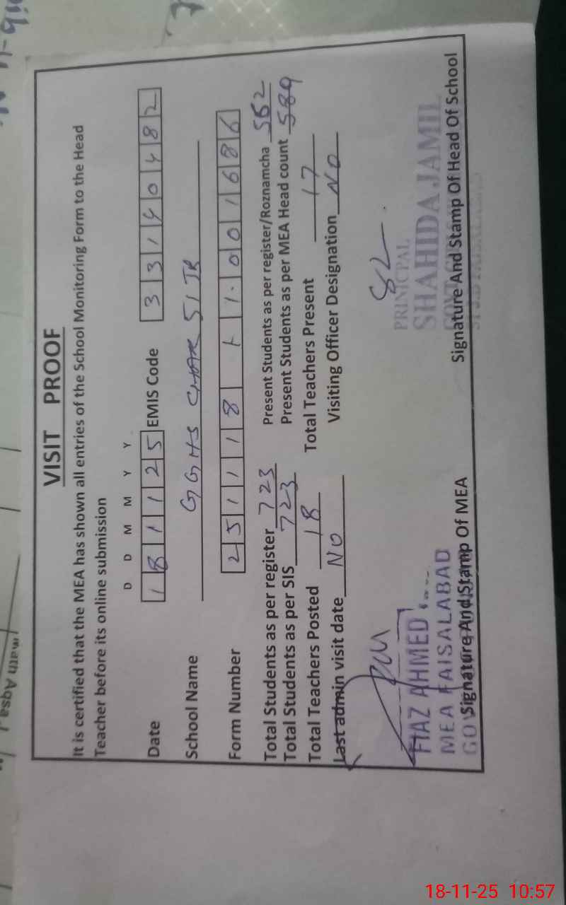 | EMIS Code: 33140482 | Name of School: GGHS CHAK 51 JB | |||