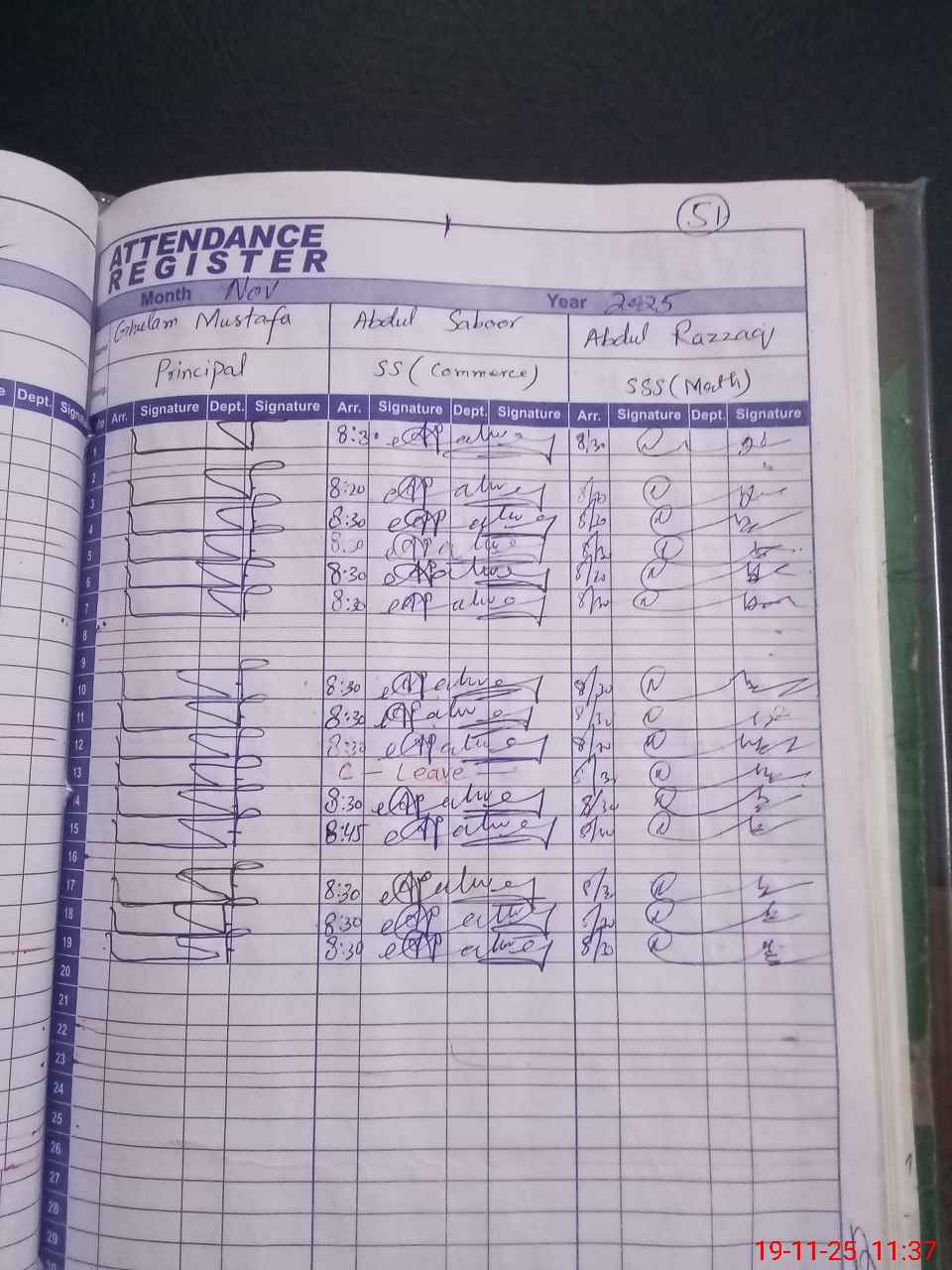 | CNIC | Full Name | Designation | R/C | Absence During Last Calender Month |