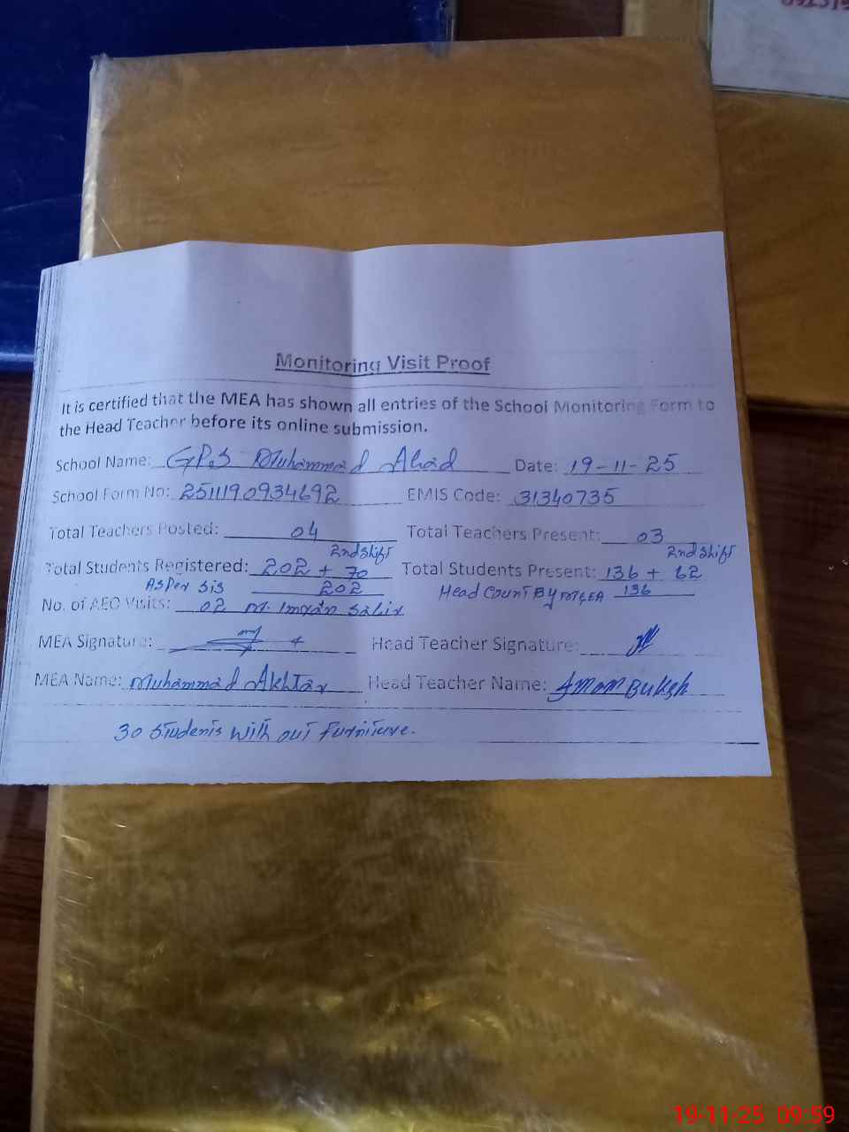 | EMIS Code: 31340735 | Name of School: GPS MUHAMMAD ABAD | |||