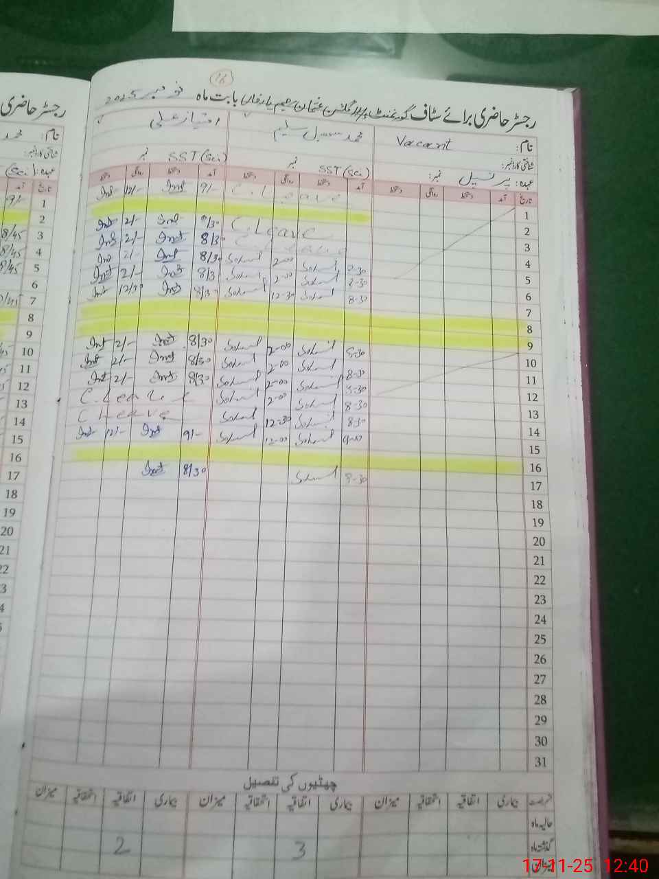 | CNIC | Full Name | Designation | R/C | Absence During Last Calender Month |