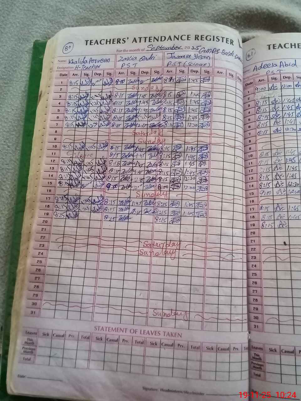 | Name: KH**** PA**** Designation: (School Headmaster's/Headmistress's) PST Phone/Cell Number: 03**** |