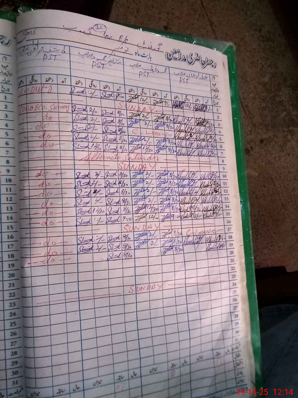 | CNIC | Full Name | Designation | R/C | Absence During Last Calender Month |