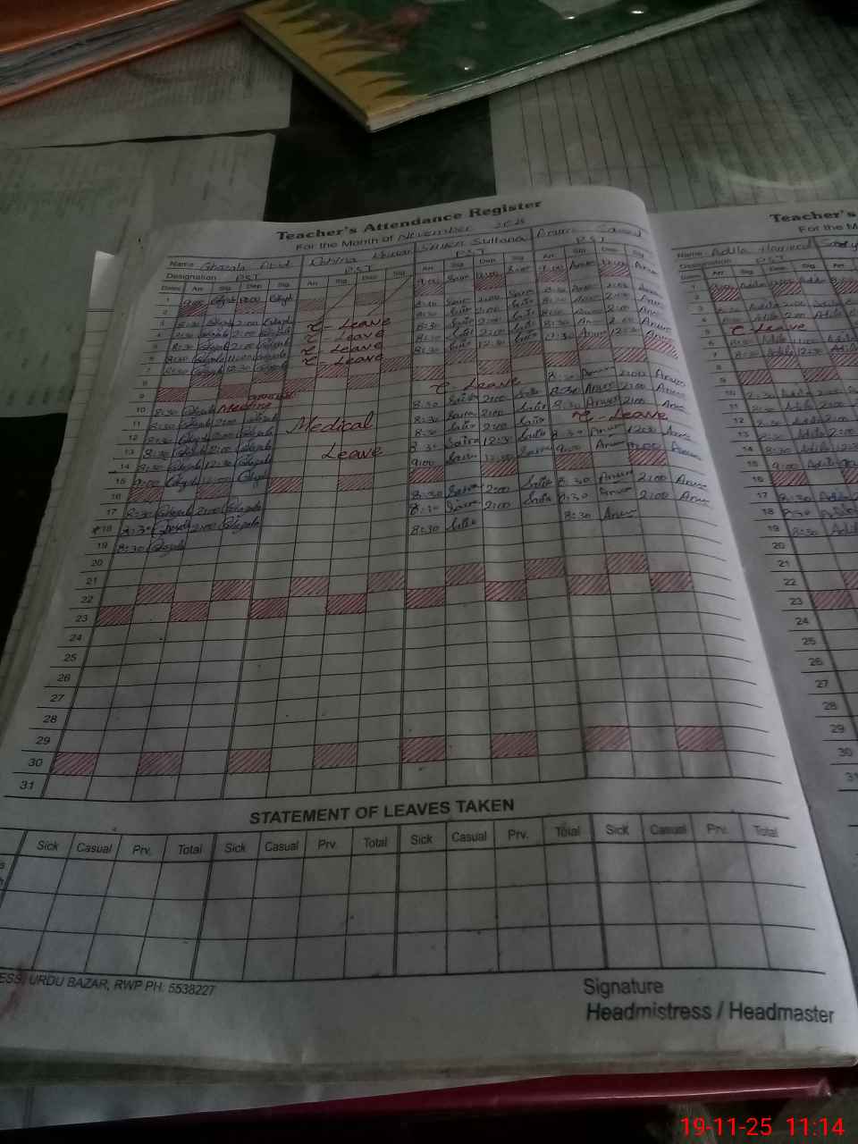| Leave | Duty | Absent | Maternity | Medical | Ex- Pak |
