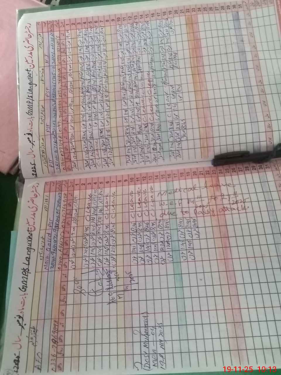 | CNIC | Full Name | Designation | R/C | Absence During Last Calender Month |