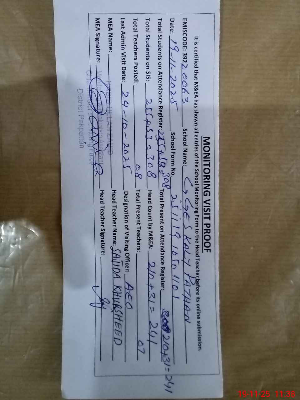| EMIS Code: 39220063 | Name of School: GGES KALAY PATHAN | |||