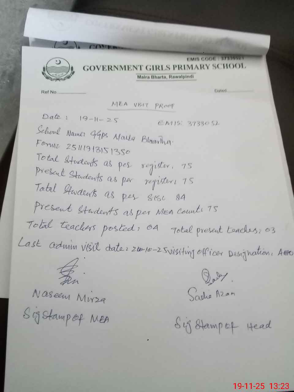 | EMIS Code: 37330521 | Name of School: GGPS MAIRA BHARTA | |||