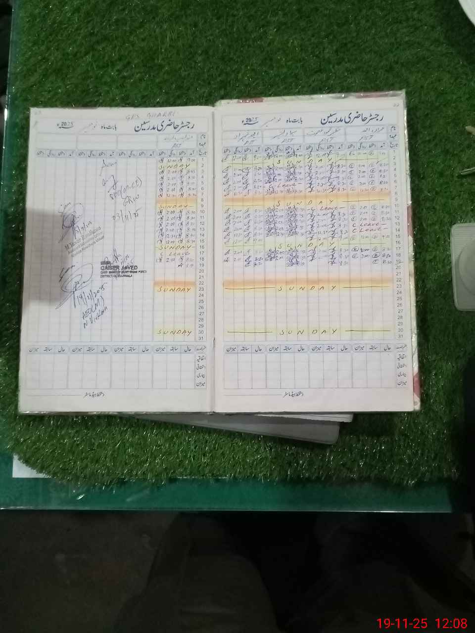 | CNIC | Full Name | Designation | R/C | Absence During Last Calender Month |
