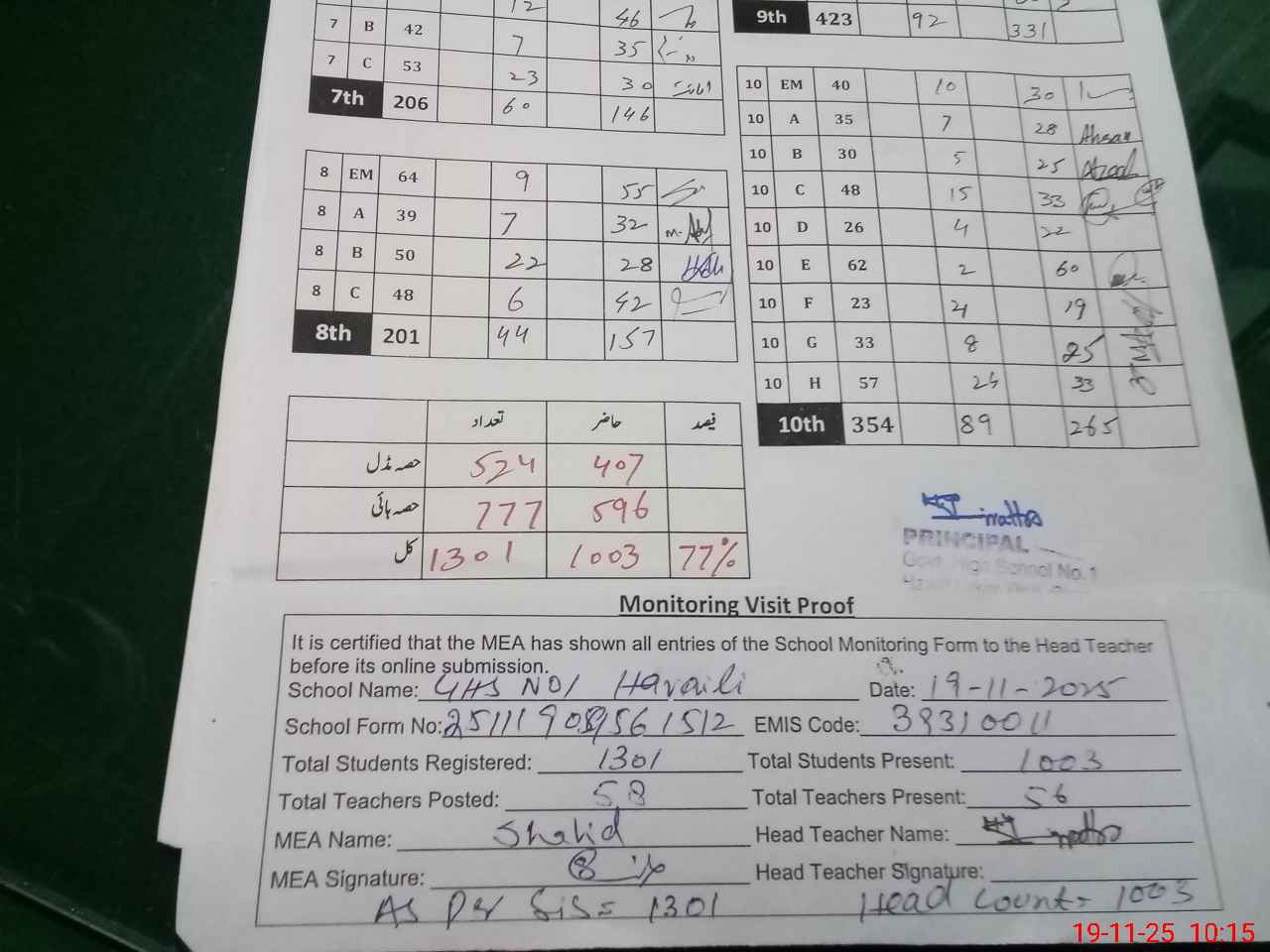 | Certified that this School was Inspected by the Undersigned MEA/DMO Today and the Information Stated Above is as Per Record. | |||||