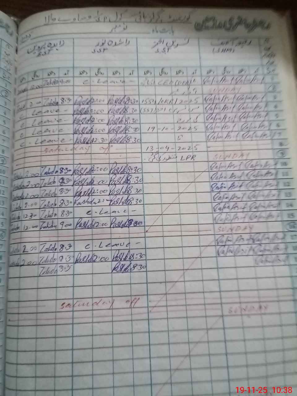 | Leave | Duty | Absent | Maternity | Medical | Ex- Pak |