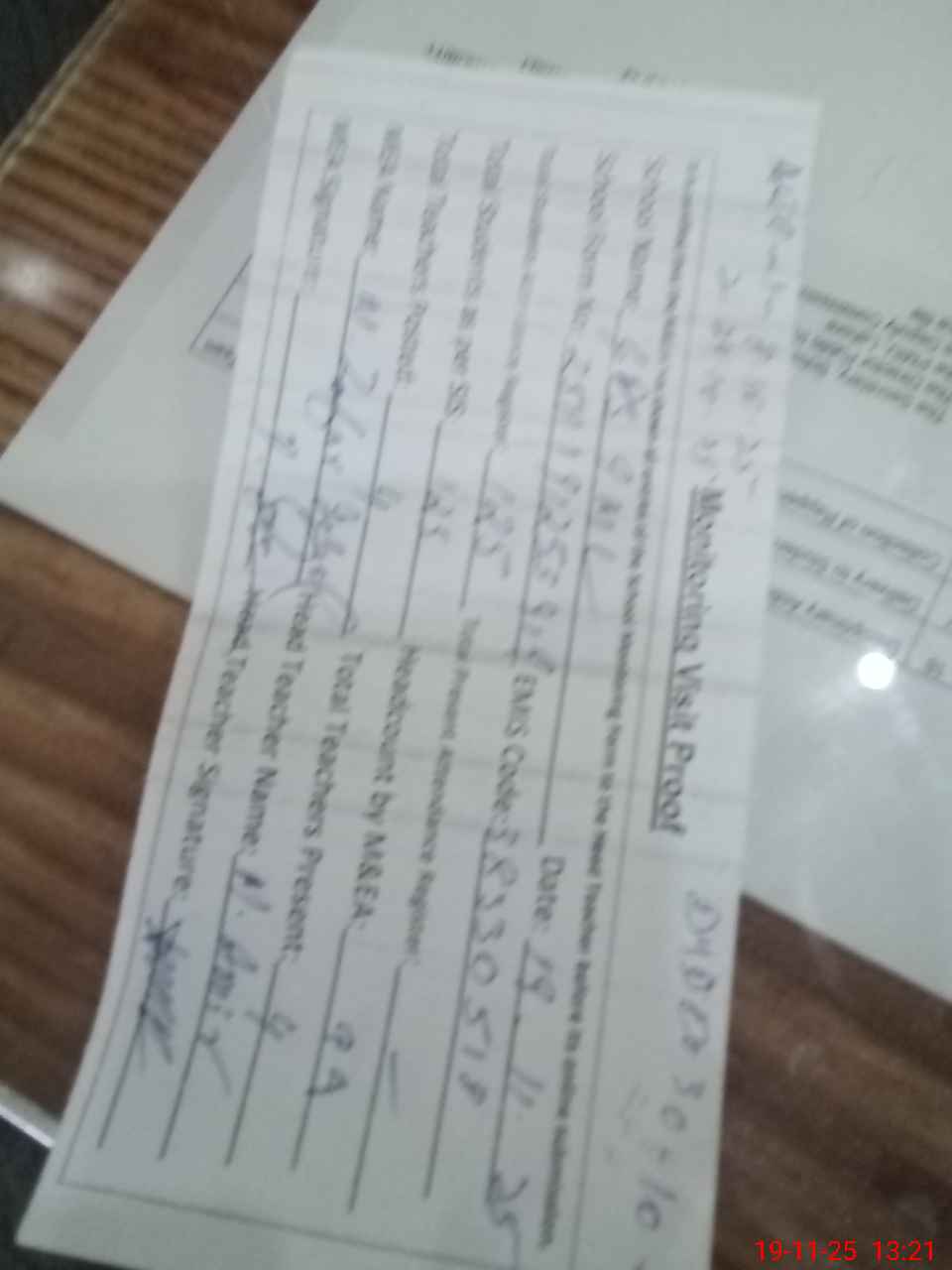 | Attendance Register | Head Teacher | MEA with School | Visit Proof |