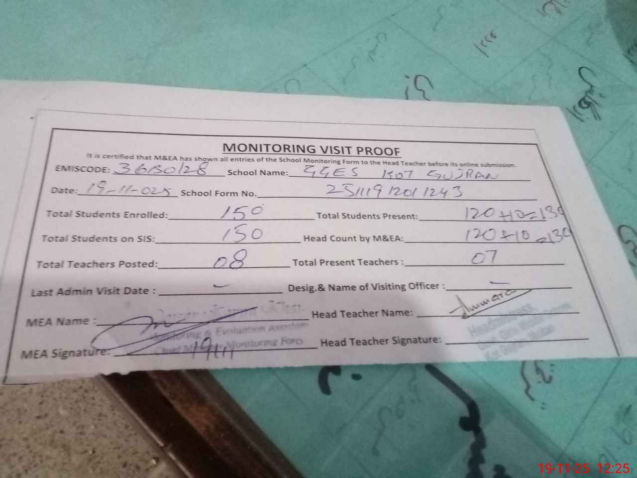 | EMIS Code: 36130128 | Name of School: GGES KOT GUJRAN P/O KOT GUJRAN | |||