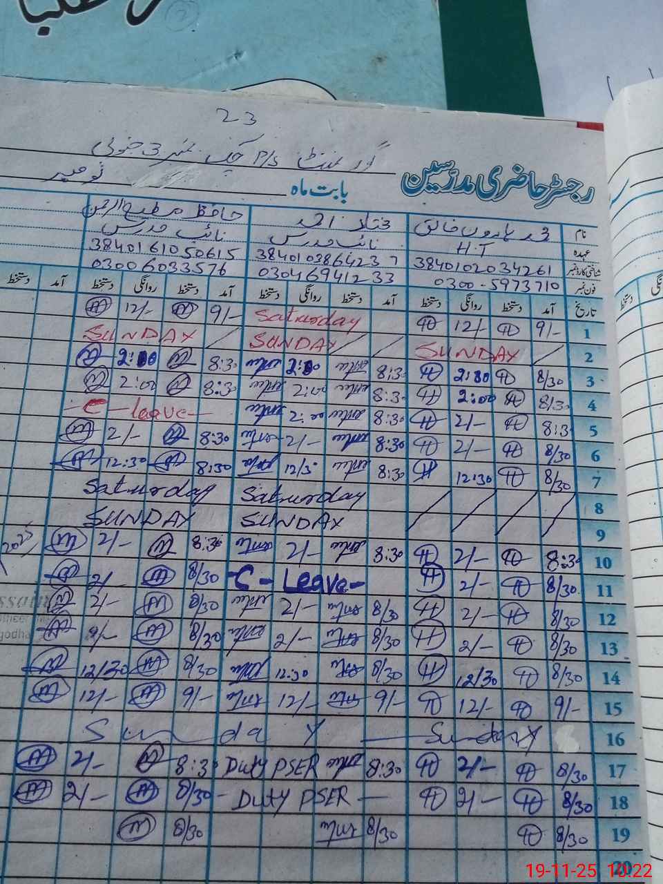 | Name: Mu**** Ha**** Kh**** Designation: (School Headmaster's/Headmistress's) PST Phone/Cell Number: 03**** |