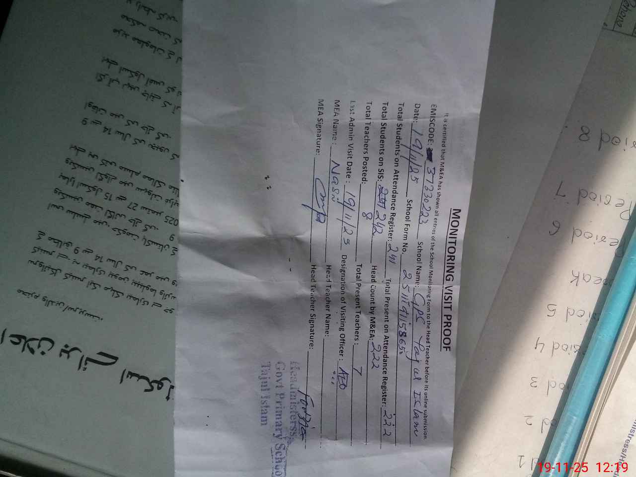 | EMIS Code: 37330223 | Name of School: GPS TAJ UL ISLAM | |||