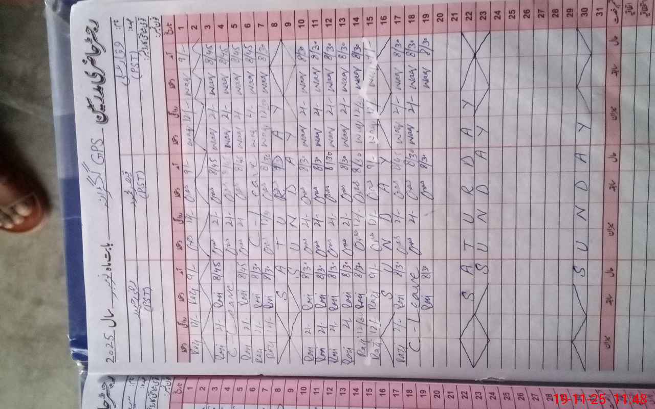 | CNIC | Full Name | Designation | R/C | Absence During Last Calender Month |