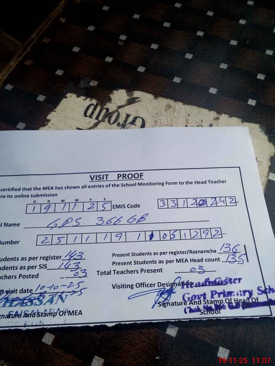 | EMIS Code: 33120242 | Name of School: GPS 366 GB | |||